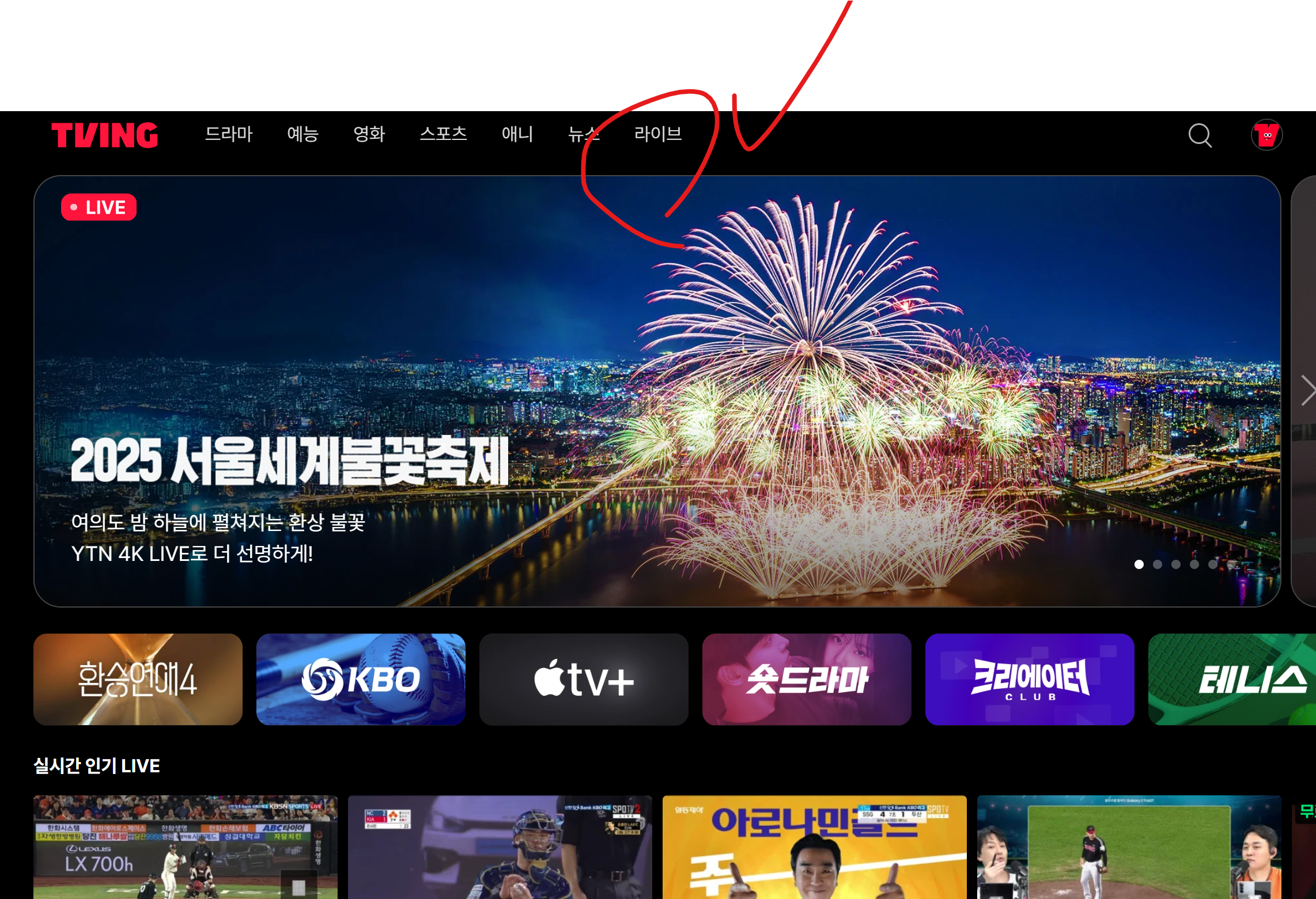 그리고 바로 실시간 생방을 시청해주시면되는데요