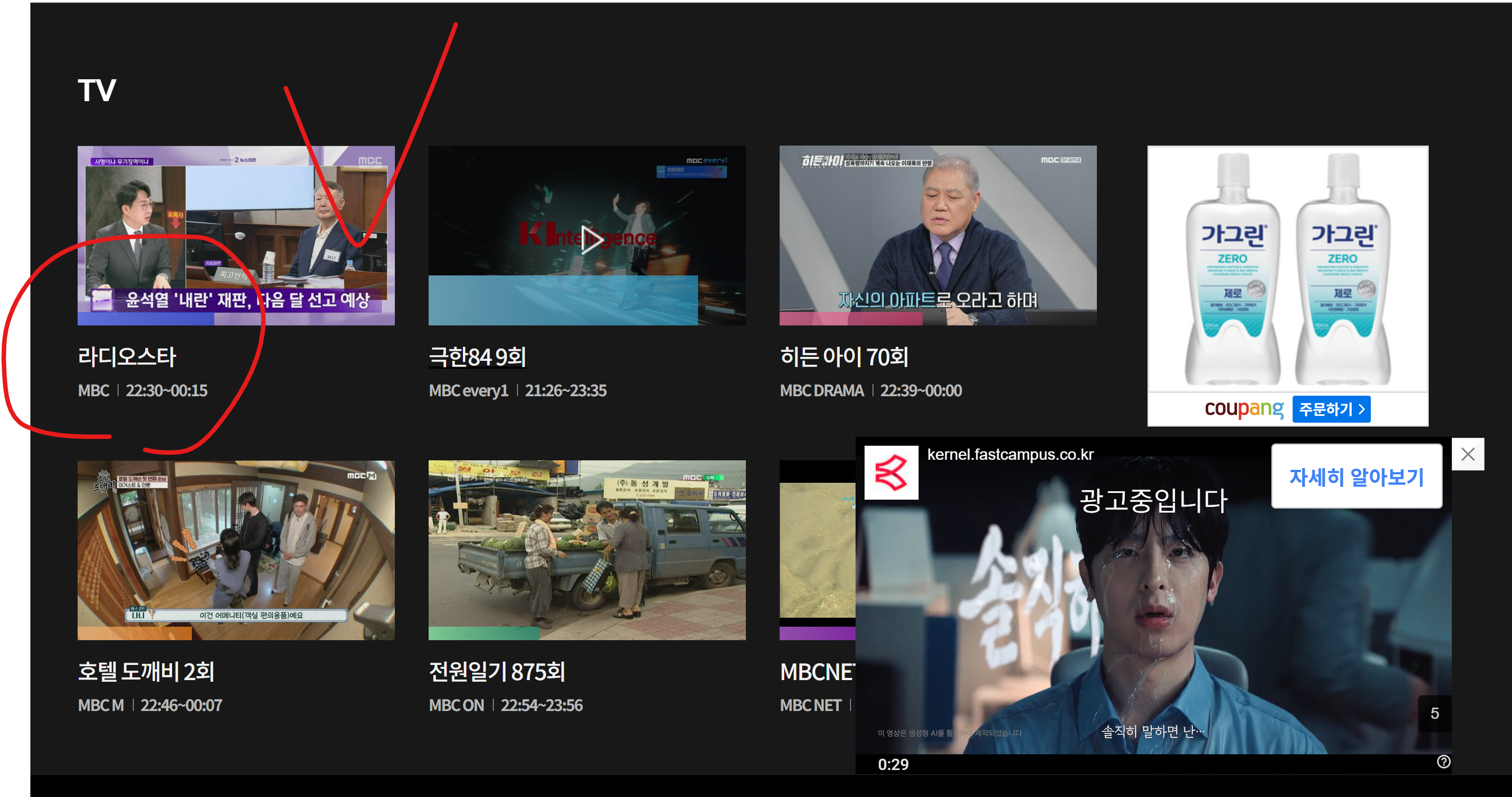 그리고 나서 아래의 채널들중 MBC를 클릭 하시고 그대로 생방송 시청 해주시면 됩니다.